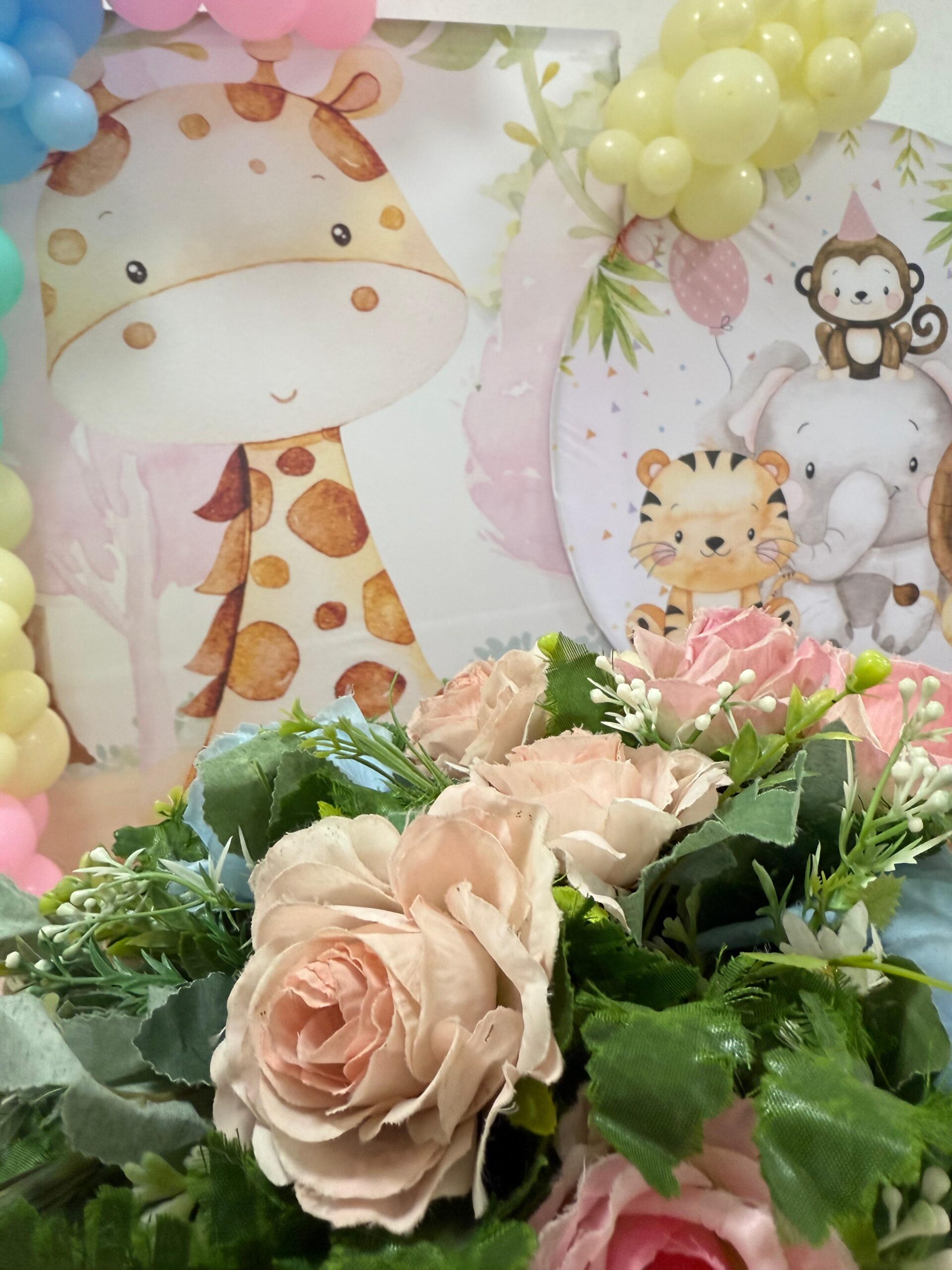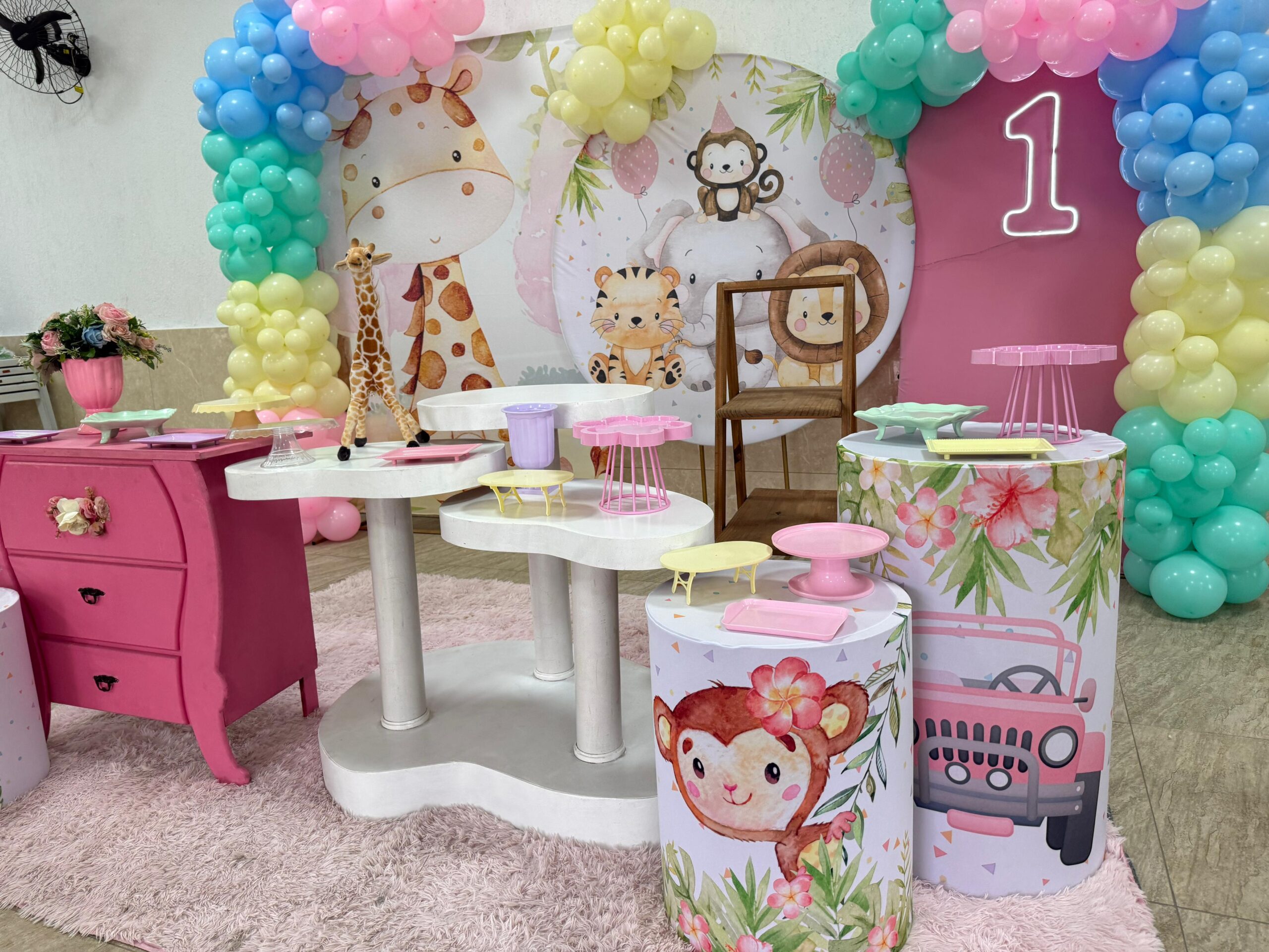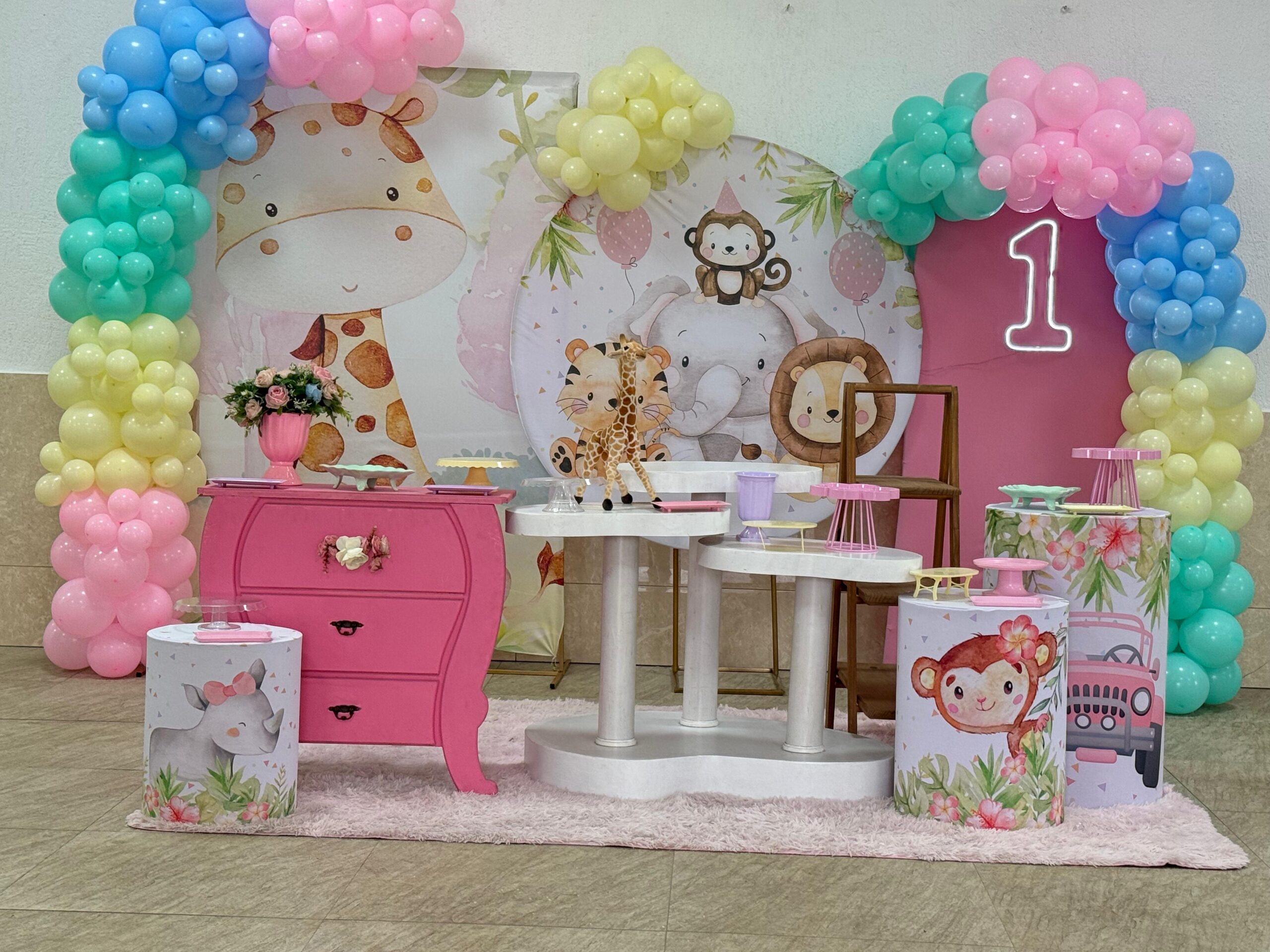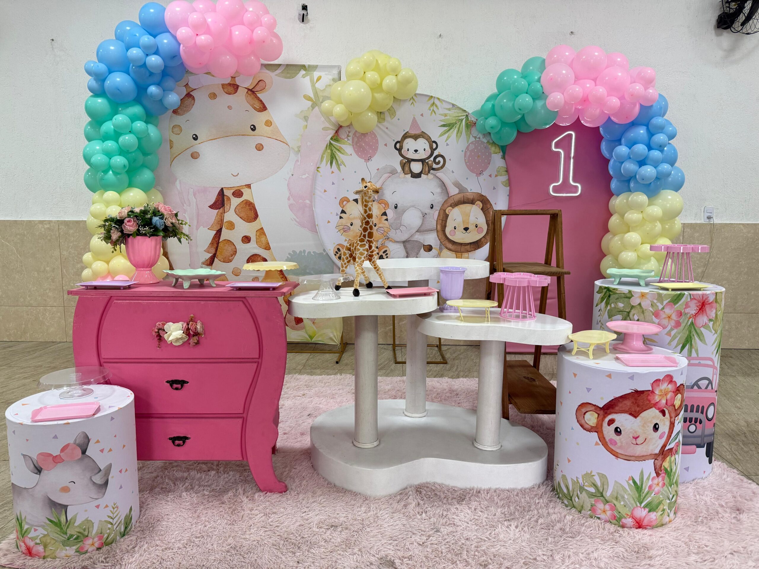 Entre balões em tons suaves, bichinhos encantadores e muitos detalhes fofos, criamos um cenário perfeito para celebrar com alegria e ternura. 🐘🦒🐒